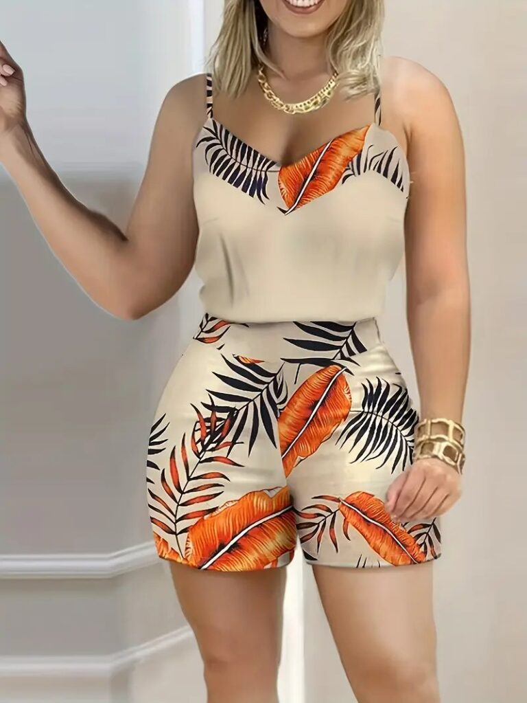 This Women’s Tropical Print Casual Outfit is a stylish and comfortable two-piece set perfect for spring and summer.
